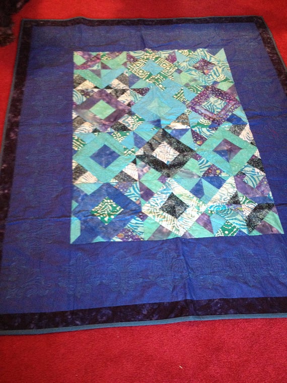 Modern Patchwork Throw Blue Turquoise Diamond Quilt Throw Etsy